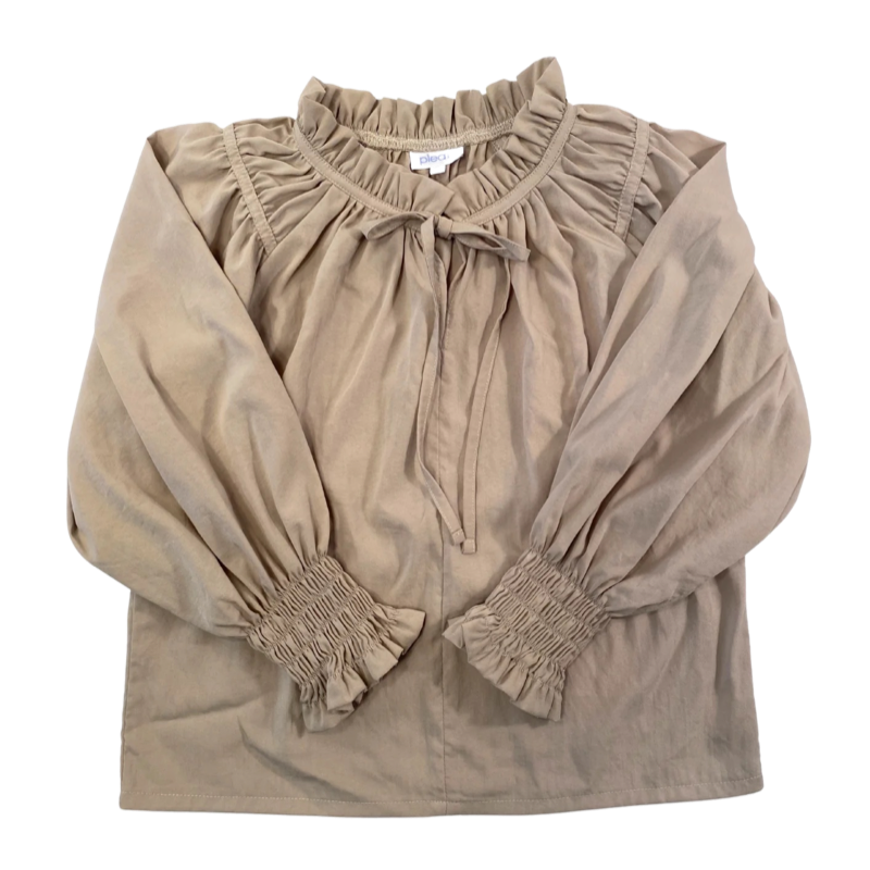 Our best selling blouse is back!- Oversized fit- Ruching shoulder detail- Neck Tie- Smocking at wrists